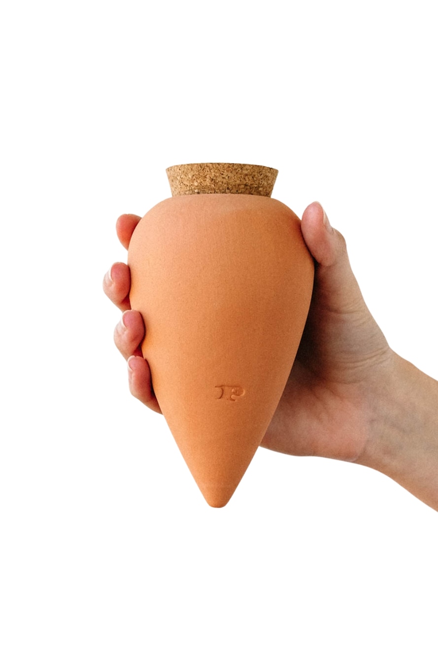 Gießen war gestern – dieser handgefertigte Bewässerungskegel aus Terrakotta übernimmt die Wasserversorgung deiner Pflanzen ganz von selbst. Einfach in die Erde stecken, auffüllen, fertig. Die Feuchtigkeit wird langsam und bedarfsgerecht abgegeben. Zuverlässig und nachhaltig funktioniert das ganz ohne tägliches Nachgießen.