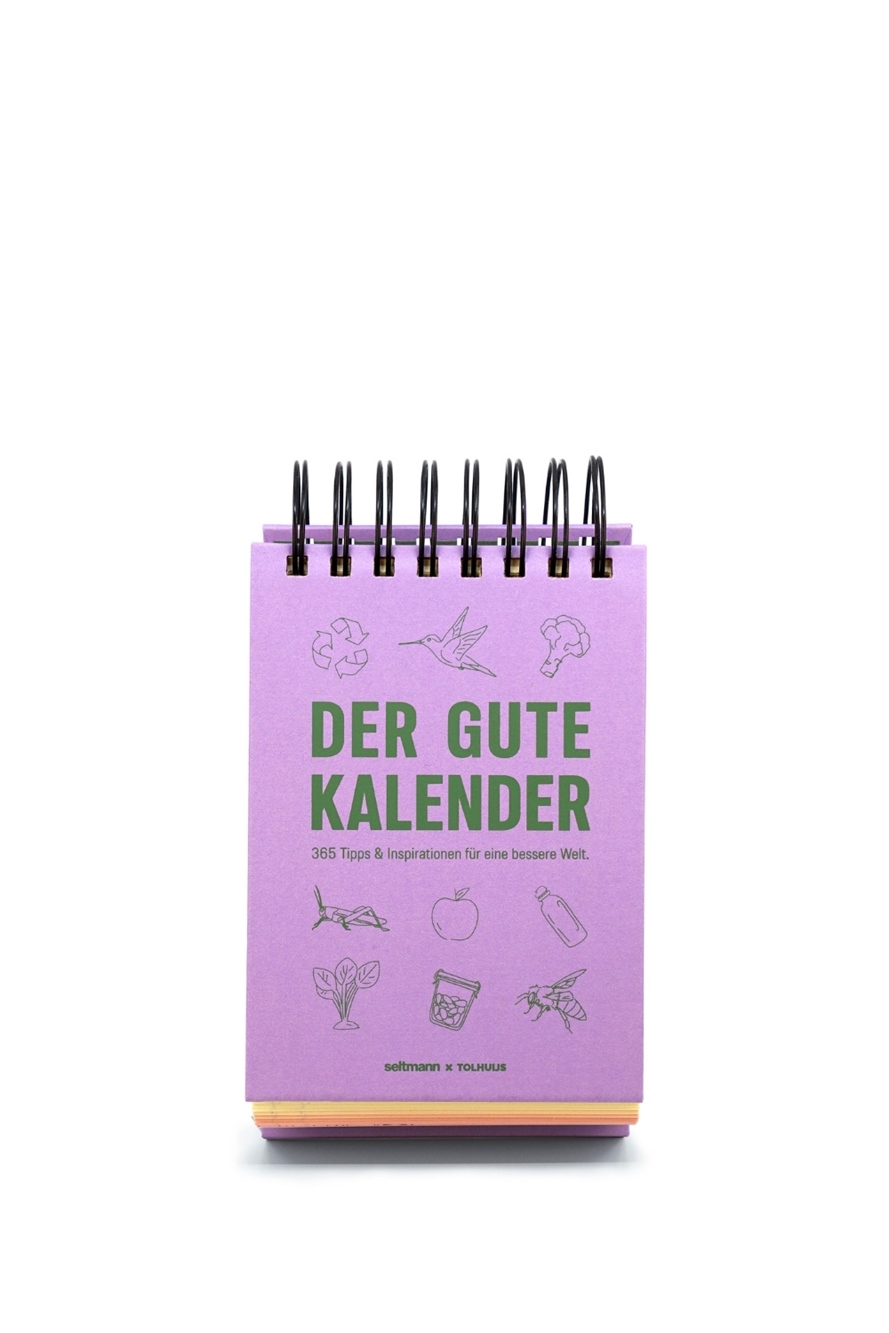 365 Chancen für ein nachhaltigeres Leben: „Der gute Kalender“ begleitet dich durch das Jahr mit täglichen Tipps, Inspirationen und Herausforderungen für eine bewusstere Lebensweise. Ob praktische Aufgaben, überraschende Fakten, kreative Rezepte oder kluge Fragen – jede Seite lädt dazu ein, neue Perspektiven zu entdecken und kleine Schritte für eine bessere Welt zu gehen. Ursprünglich 2022 beim niederländischen Nachhaltigkeitslabel TOLHUIJS erschienen und bereits über 10.000-mal verkauft, ist dieser erfolgreiche immerwährende Kalender nun endlich auch auf Deutsch erhältlich.