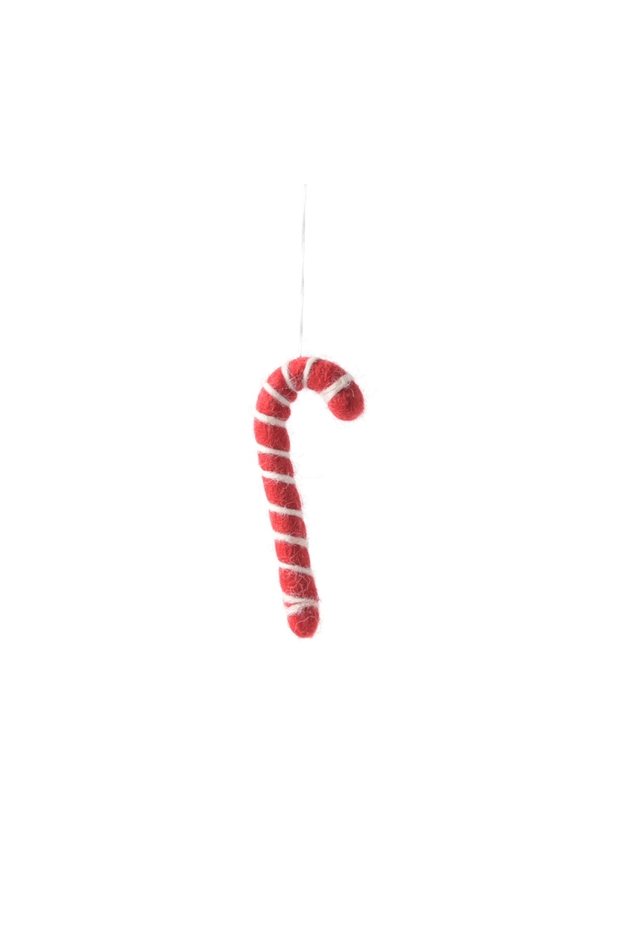 Süß, aber nicht essbar: Die handgefilzte Zuckerstange aus 100% Wolle bringt Weihnachtsstimmung an Baum, Zweig oder Geschenk.