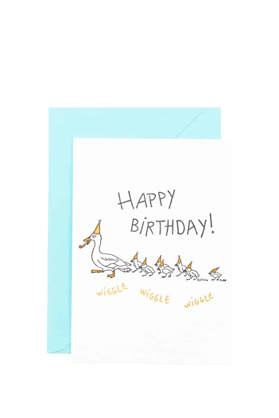 Wiggle, Wiggle, Wiggle – Happy Birthday! Gedruckt im klassischen Buchdruck auf feinem Baumwollpapier.