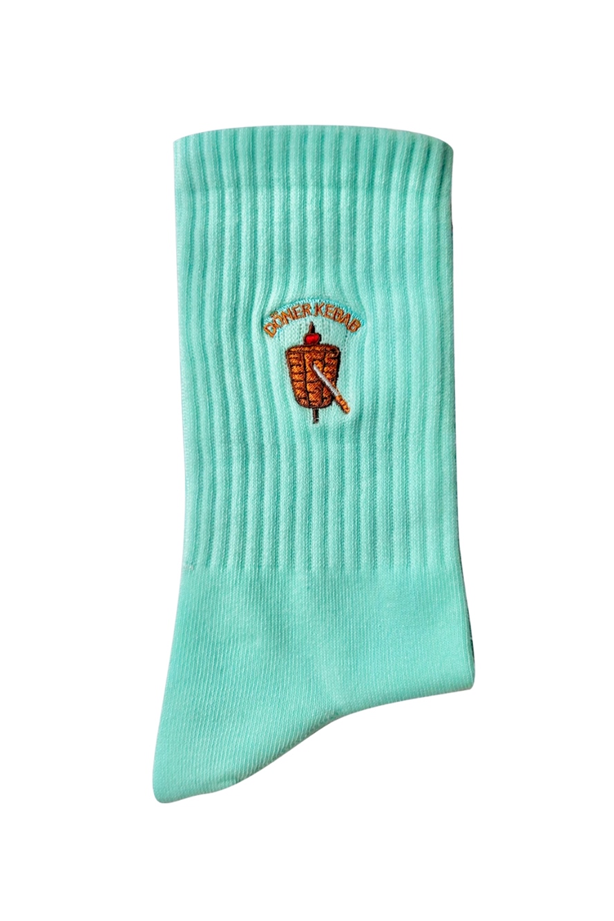 Türkis trifft Drehspieß: Diese Socken feiern das beliebteste Streetfood mit einem feinen Stickmotiv – ein senkrecht gegrillter Döner, wie man ihn kennt und liebt. Perfekt als Geschenk, Gesprächsstoff oder einfach für den Alltag. Für alle, die gutes Essen ernst nehmen – und ihre Socken locker sehen.
