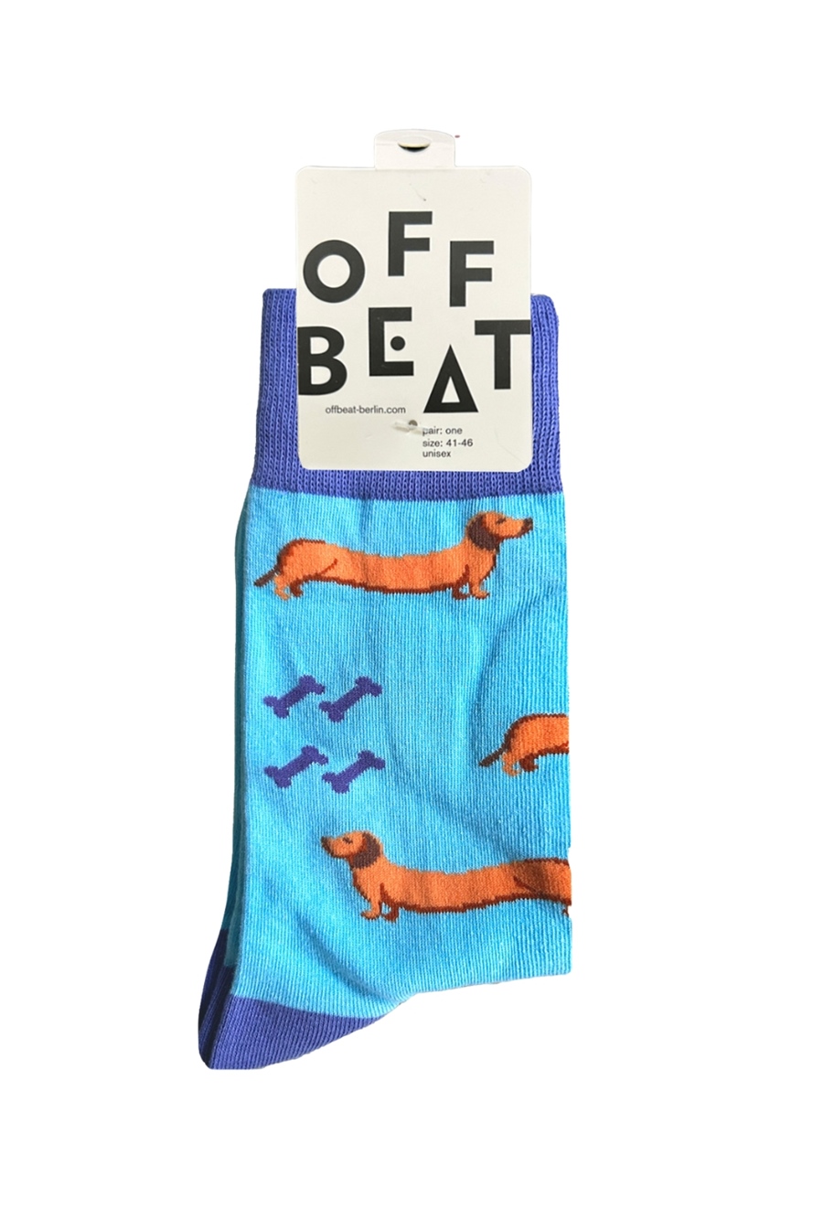 Mit diesen Offbeat-Socken läuft dir der Dackel nicht davon – sondern zieht seine Runden auf deinem Bein. Unisex, bequem und ein echter Blickfang.