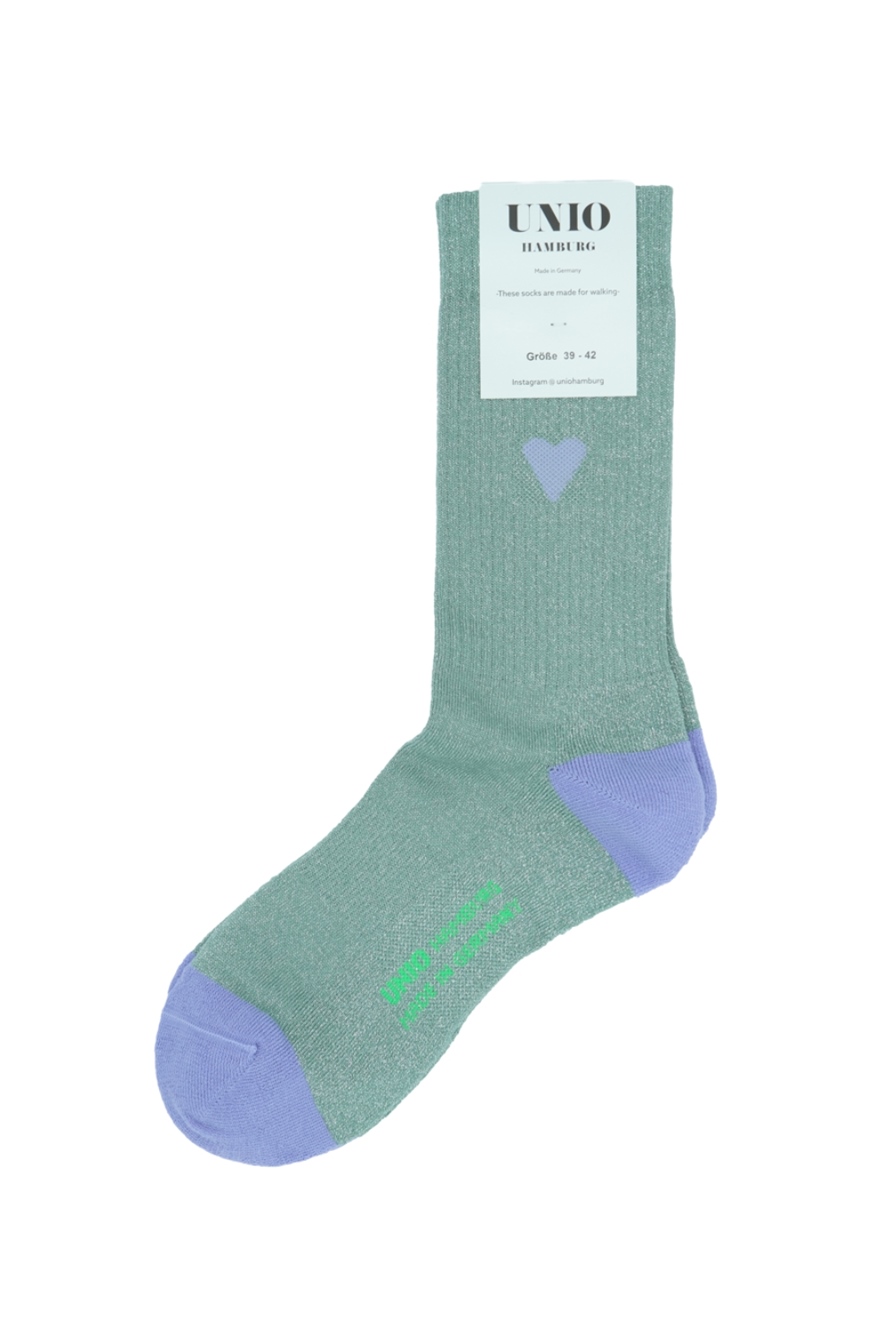 Die Socken Love von UNIO Hamburg verbinden weiche Baumwolle mit fein schimmernden Metallicfäden – für alle, die es bequem und besonders mögen. Elastisch, angenehm zu tragen und in vielen Farben erhältlich.